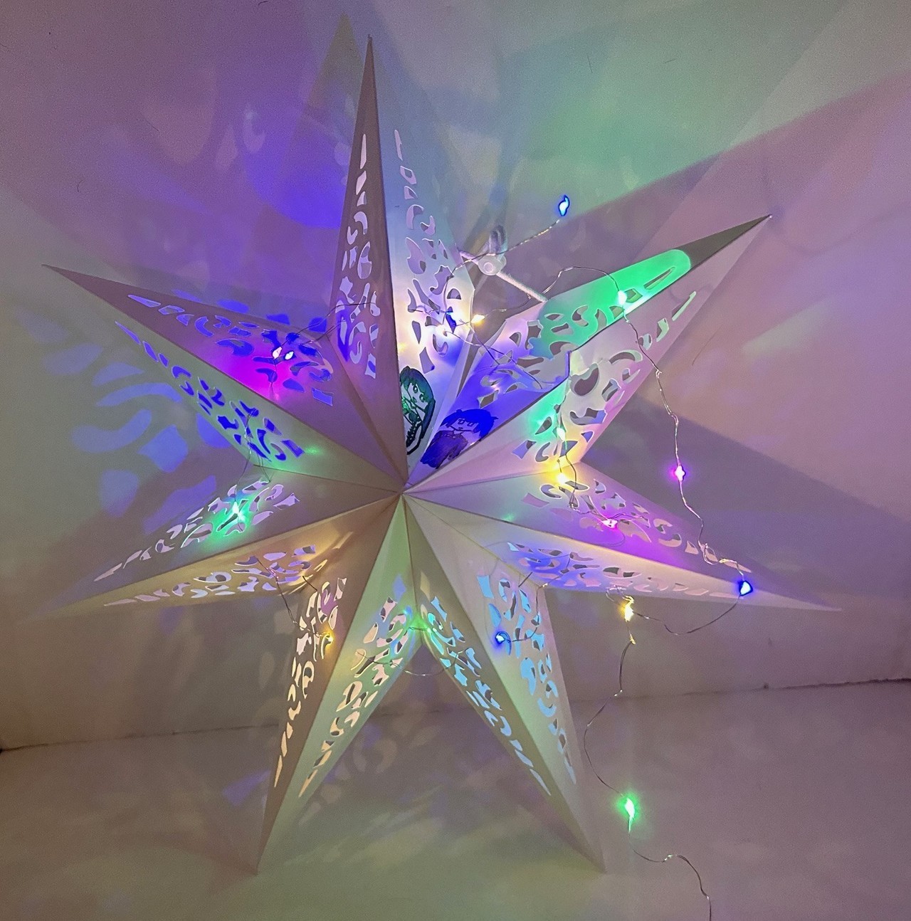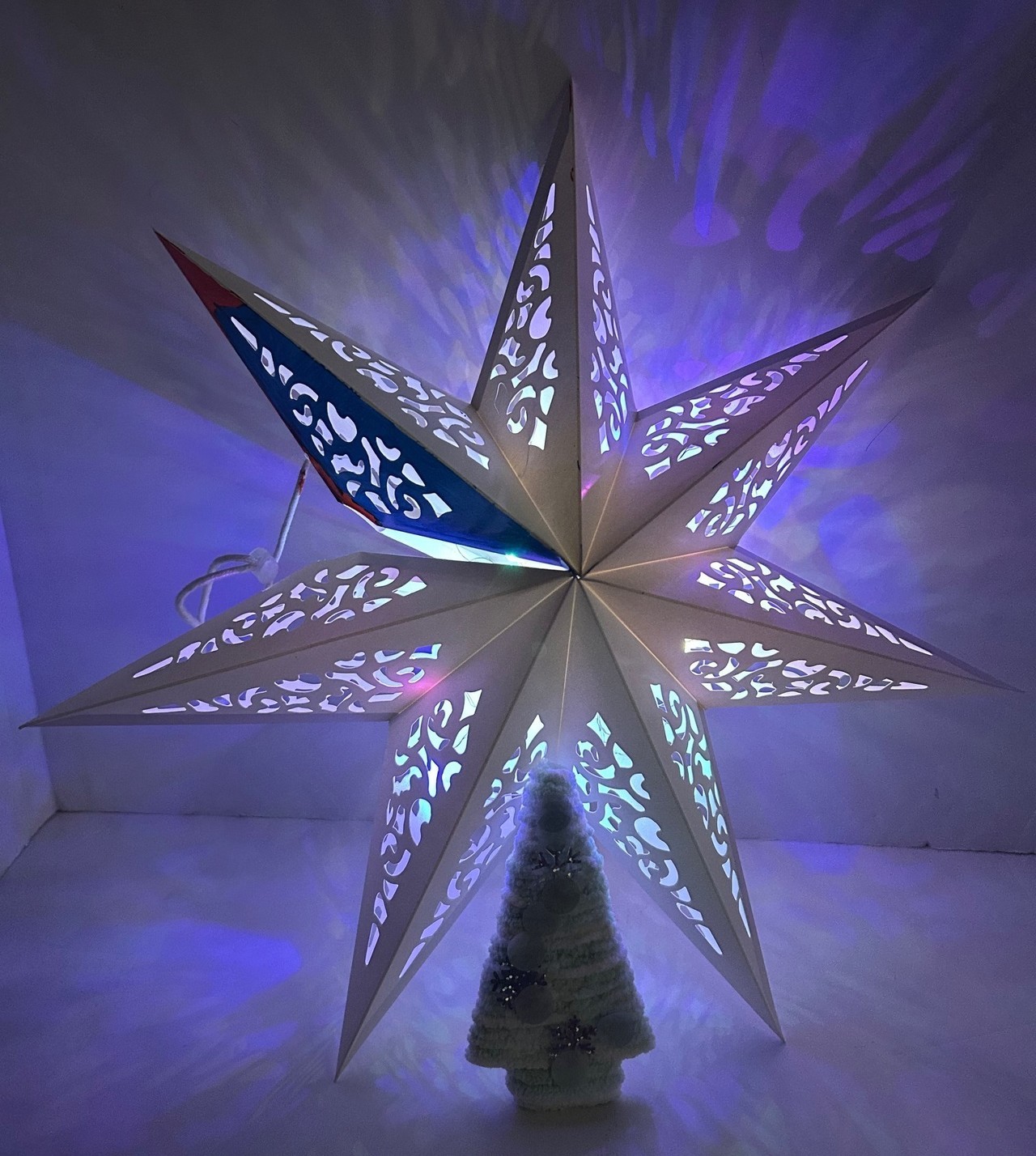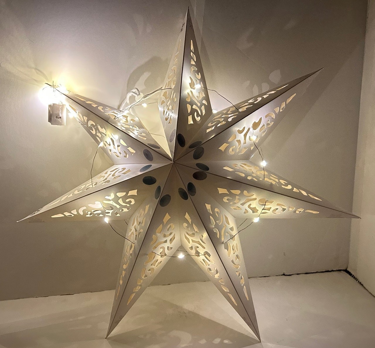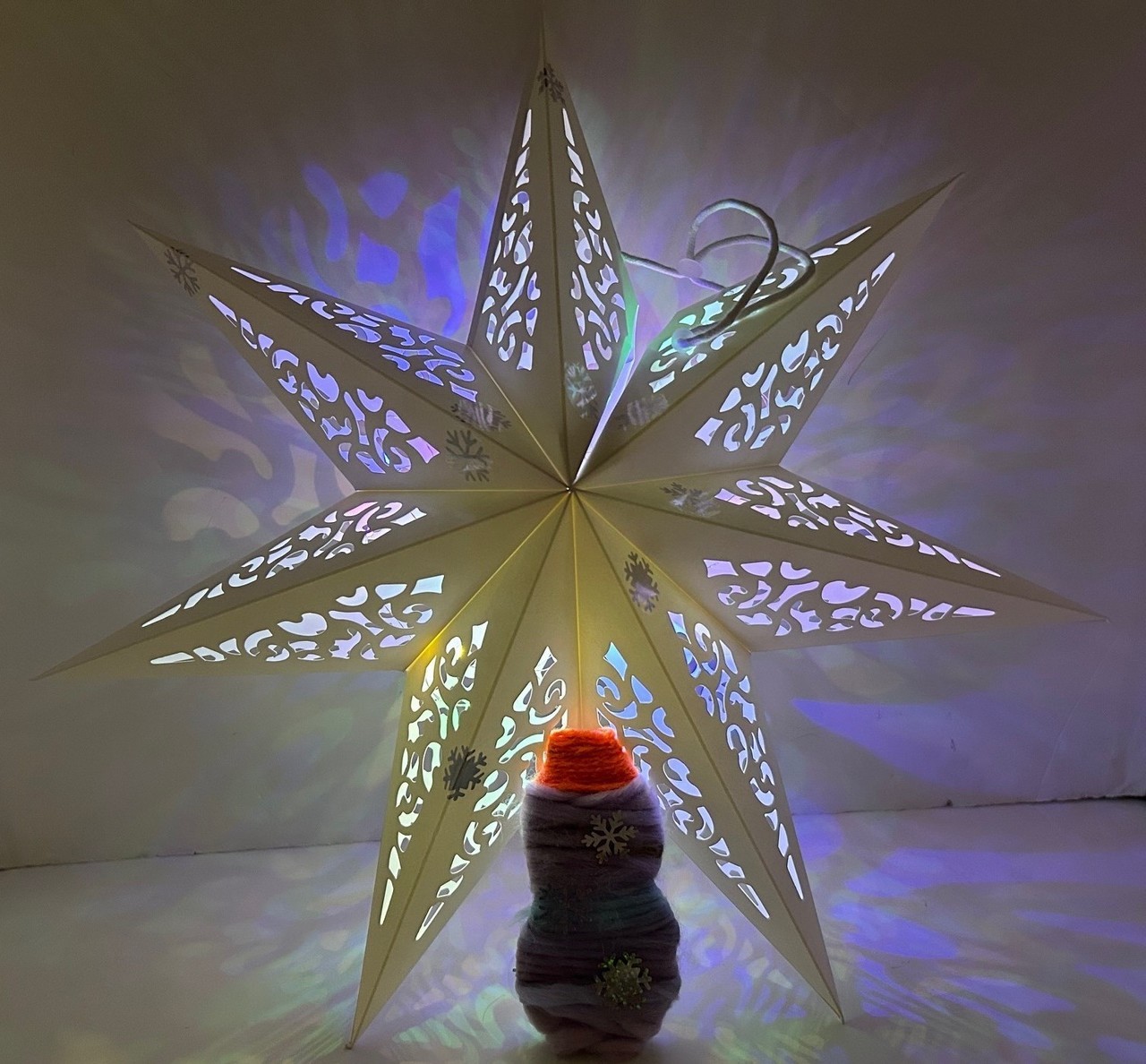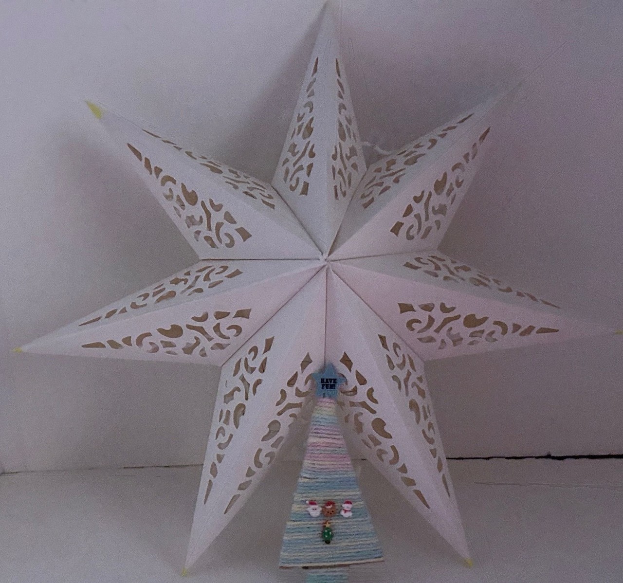 戸羽講師から「今回は星の形をしたものにライトや色を付けたりして飾り付けました。置いたり、壁掛けにもできます。これから寒くなりますが体調管理には気を付けて冬を乗り切ってくださいね。」