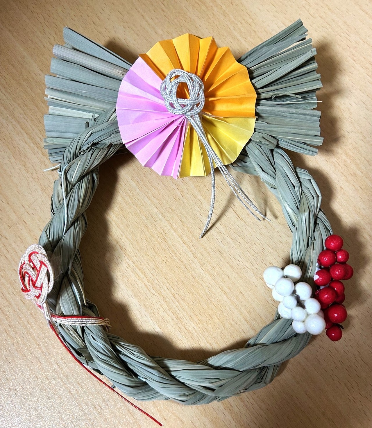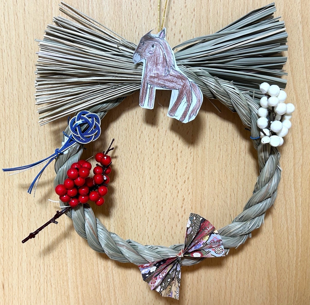 毎年恒例の「しめ飾りアート」しめ飾りとして販売しているものを分解して、自分好みの素材選びをして、組み立ててオリジナル作品を完成させました。お家の玄関に飾るのが楽しみですね!
