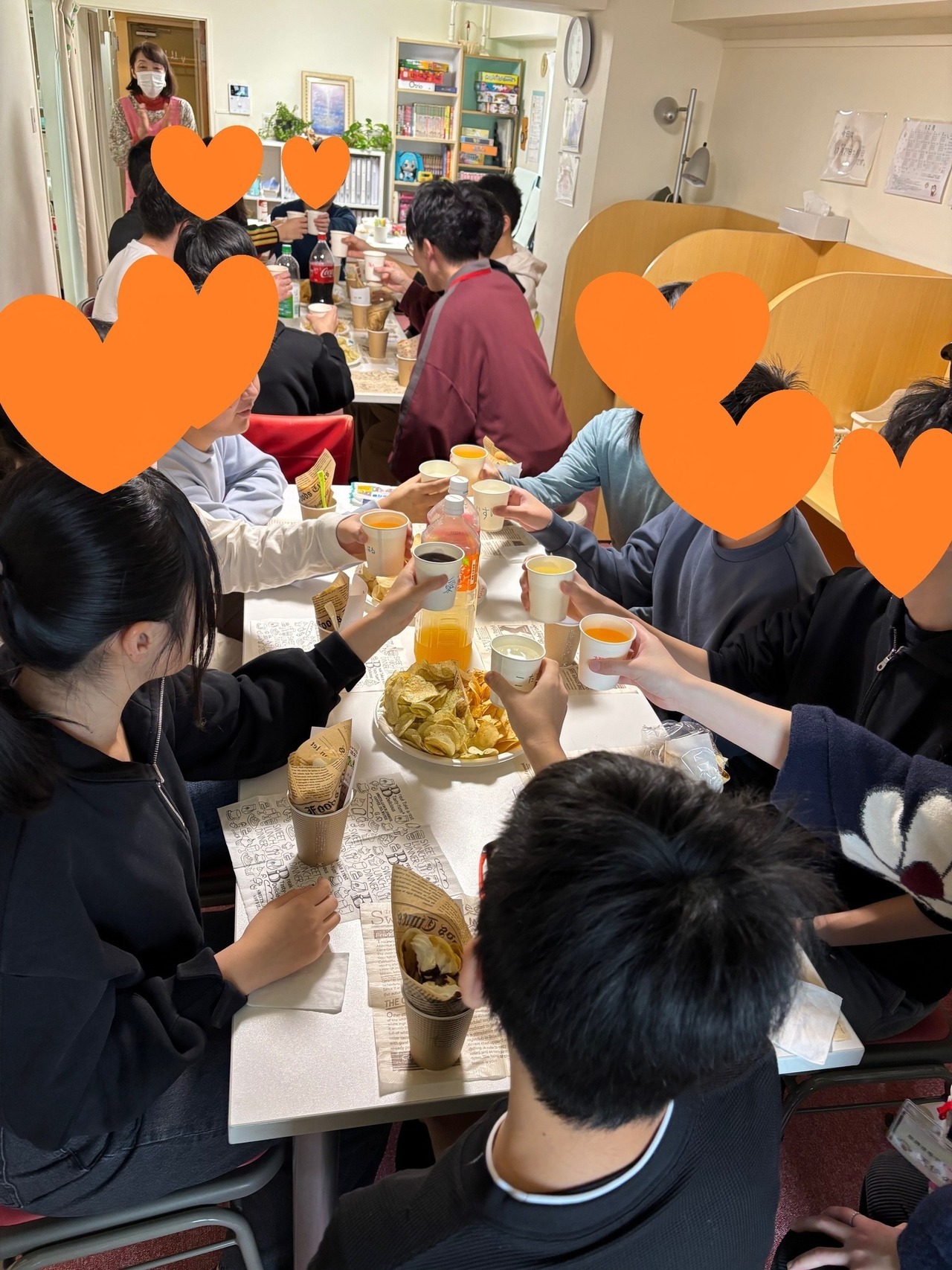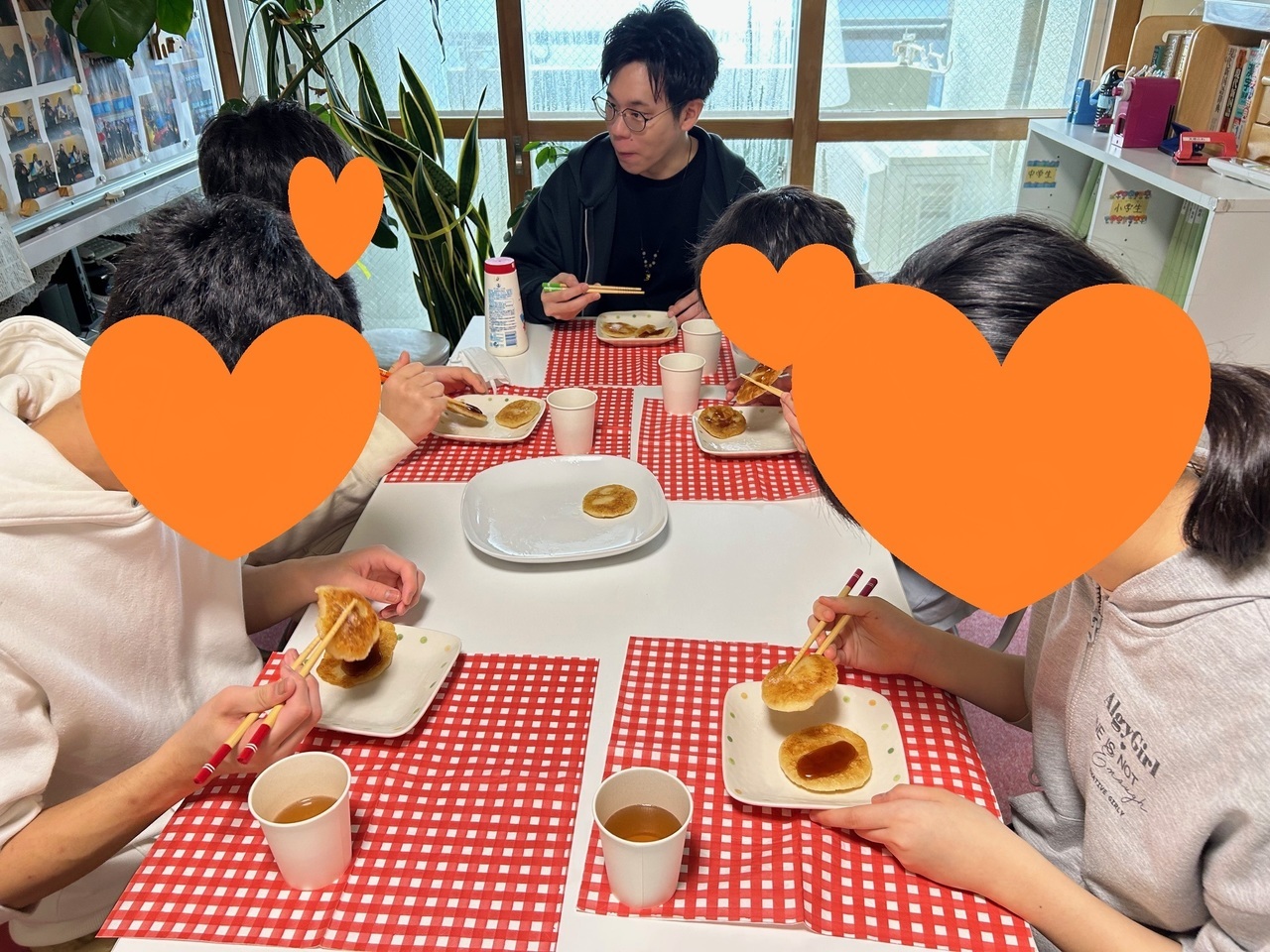 今日はいつもデイで一緒に学習をしている仲間たちとの初イベント「忘年会」開催!ソーシャルスキルトレーニングとして子どもたちは準備と運営の段階から関わり、チームで協力する大切さ、仲間を応援する気持ち、小集団の中で発言する機会を多く持ちました。体を動かすゲームは「ボッチャ」「セイムアンサー」「15マス鬼ごっこ」。司会もゲーム説明も子どもたちが担当。最後は、みんなでクレープパーティ♪能登谷代表手作りのクレープ、おやつリクエスト第一位のポテチ、みんなのアンケートで選んだジュースでスペシャルタイム♪一年の頑張りを認め合う笑顔あふれる楽しいひと時となりました。