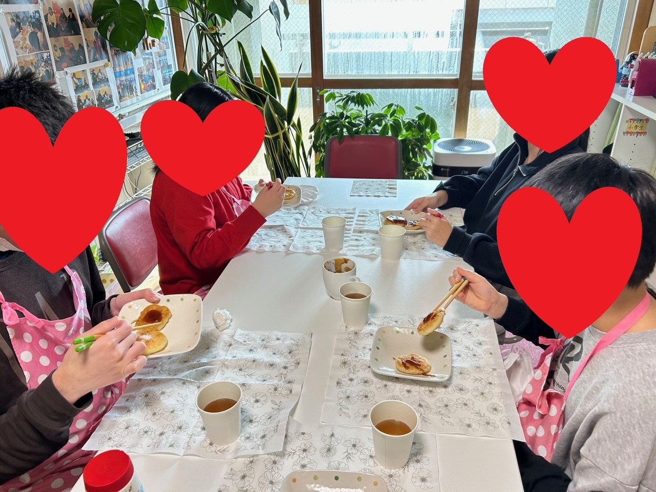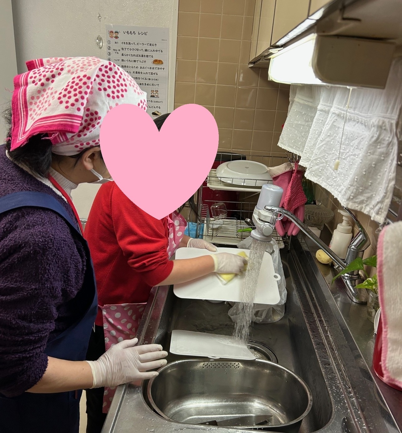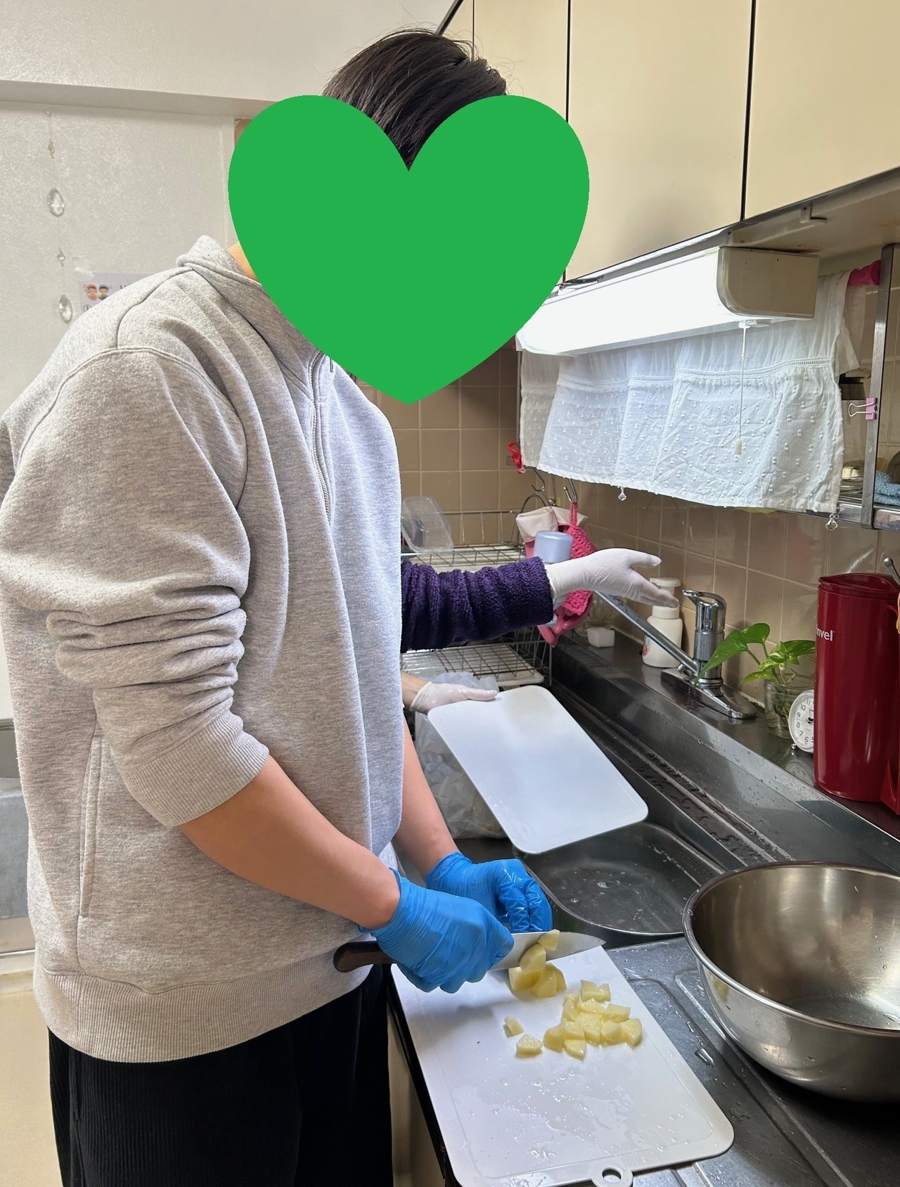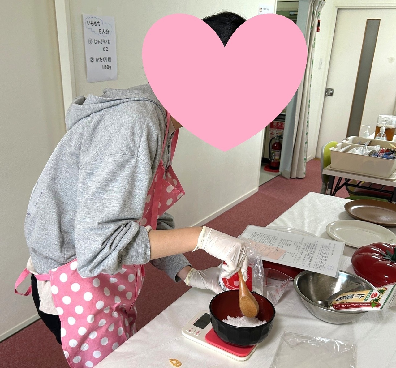 天使のわスペシャルイベント『いももち作り』芽室町粟野ファームさんからいただいたジャガイモを使って芋もちを作って食べました。~材料の計量、皮むき、包丁でカット、茹でる、棒でついて成型、焼く、実食、片付け食器洗い~調理は作業を見通す力を養います。そして、仲間とコミュニケーションを取りながら作業する練習をするSSTです。みんなで協力しながら一生懸命に作った芋もちを和気あいあいと食べて「おいしい!」「おいしい!」と大満足の笑顔がいっぱいでした。みんなで作った芋もちは、柔らかでモチモチでスタッフも大喜び大好評でした。